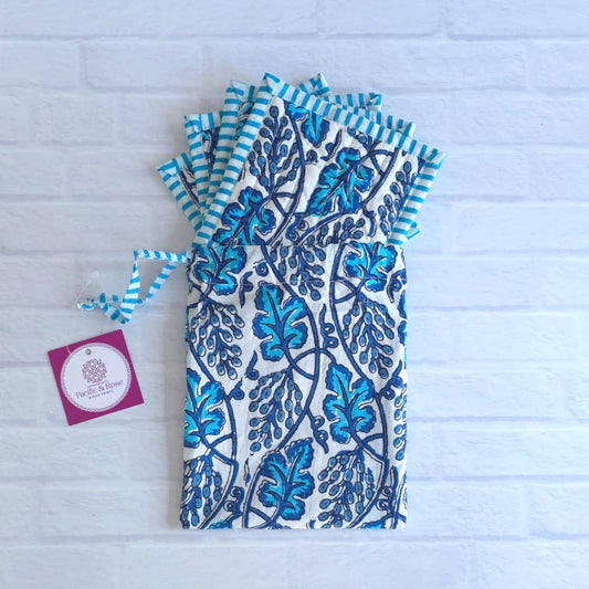Quilted Coasters, Falling Leaves Blue, set of 4