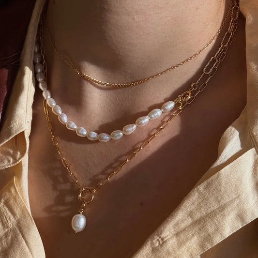 emily pearl layer necklace gold