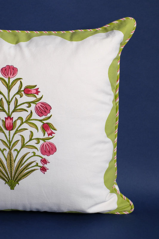 Green Scallop Blockprint Flora Pillowcase 18"x18" - Inner Child