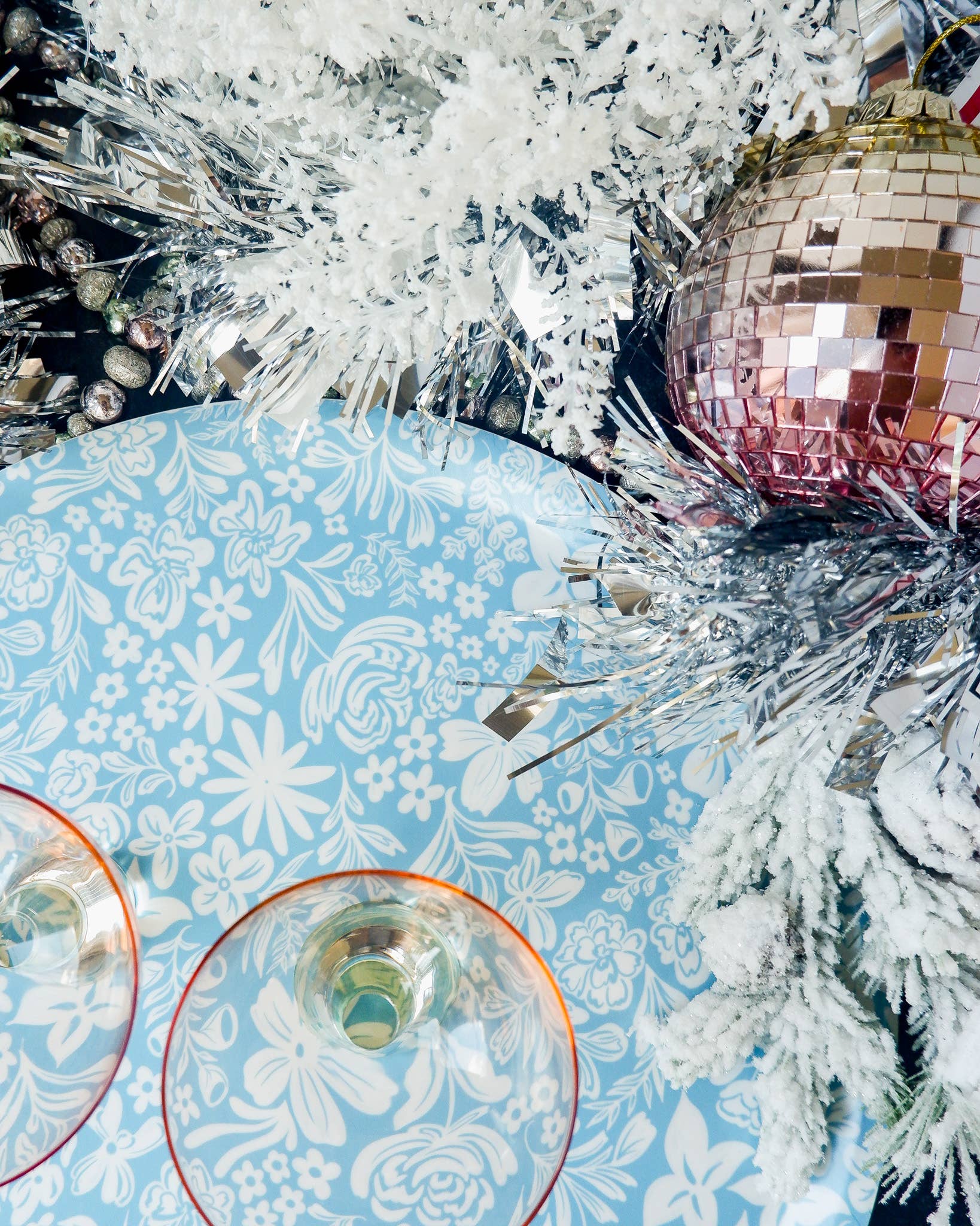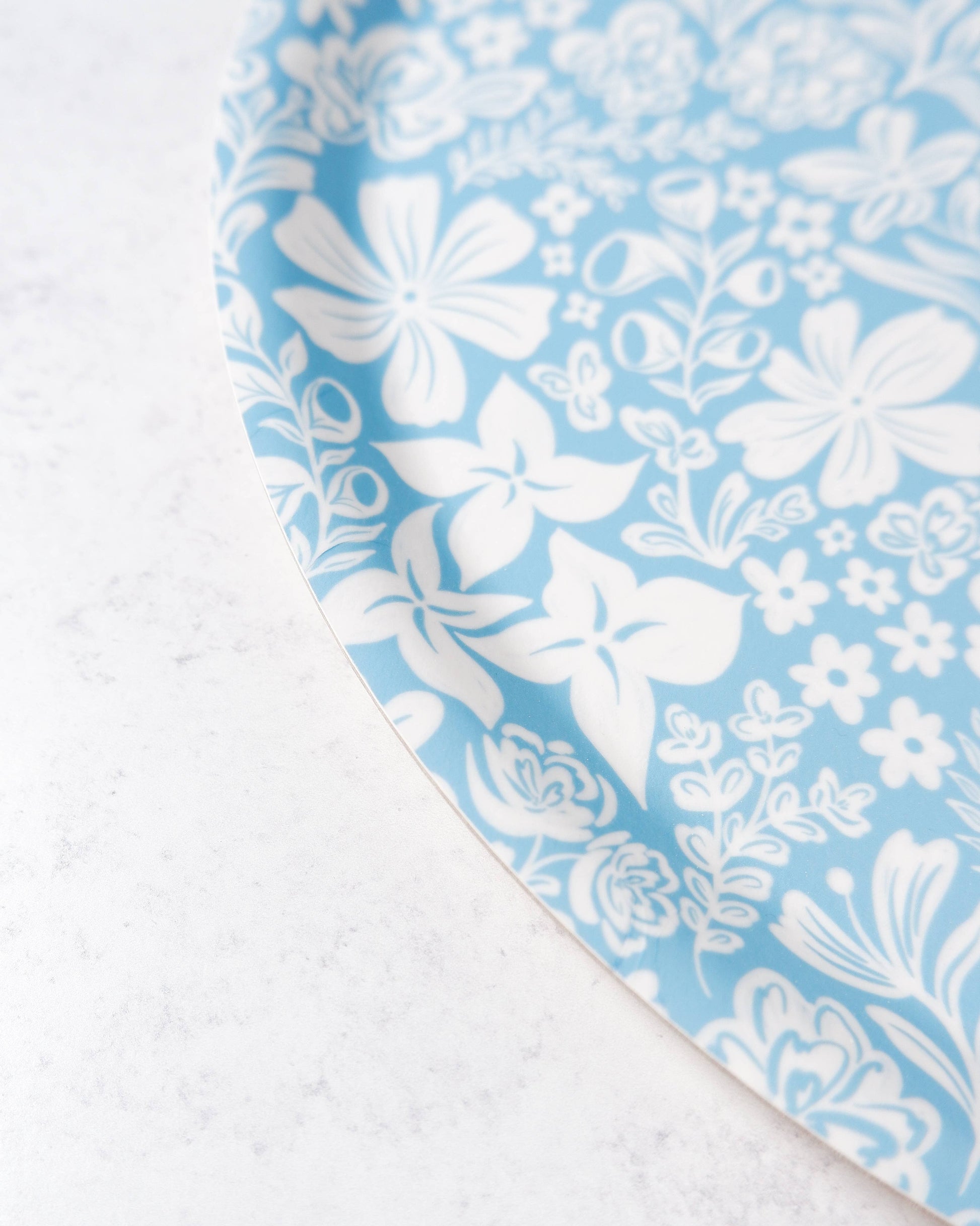 Blue Florals Bent Birch/Melamine Round Serving Tray Platter