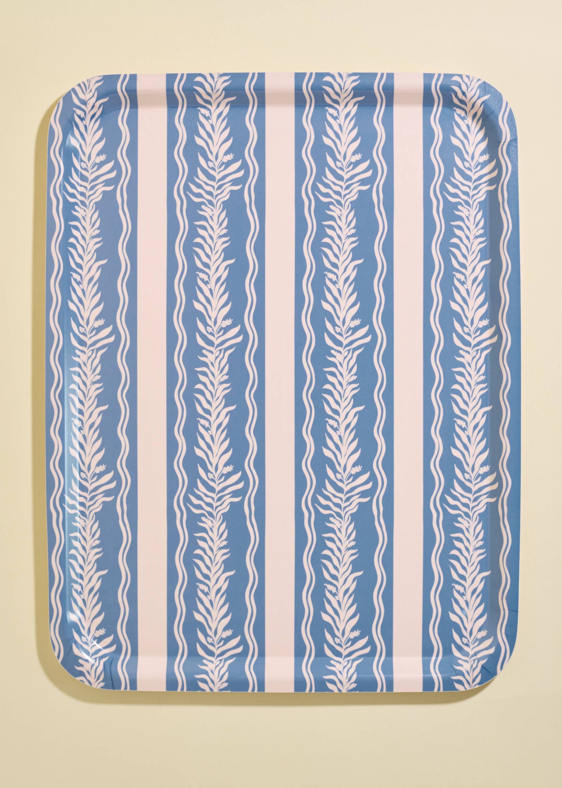 Blue Vine Stripe Illustrated Bent Birch Serving Tray