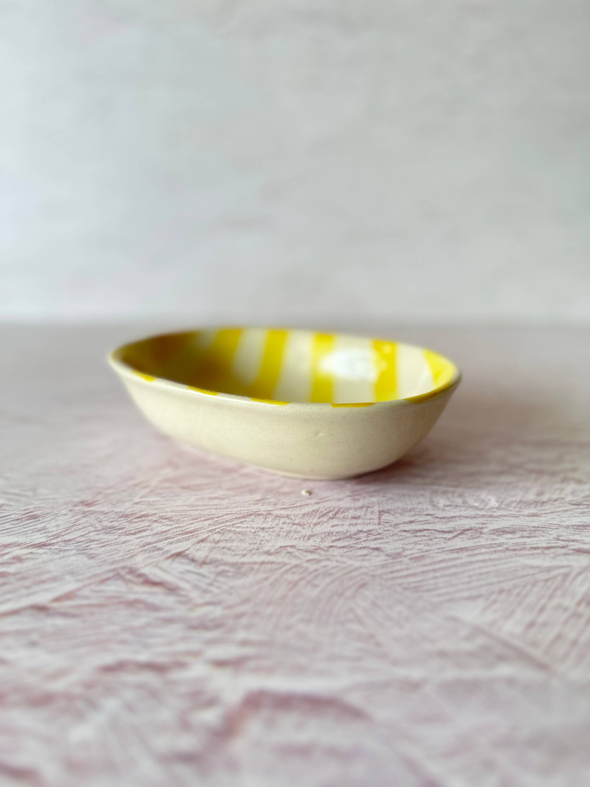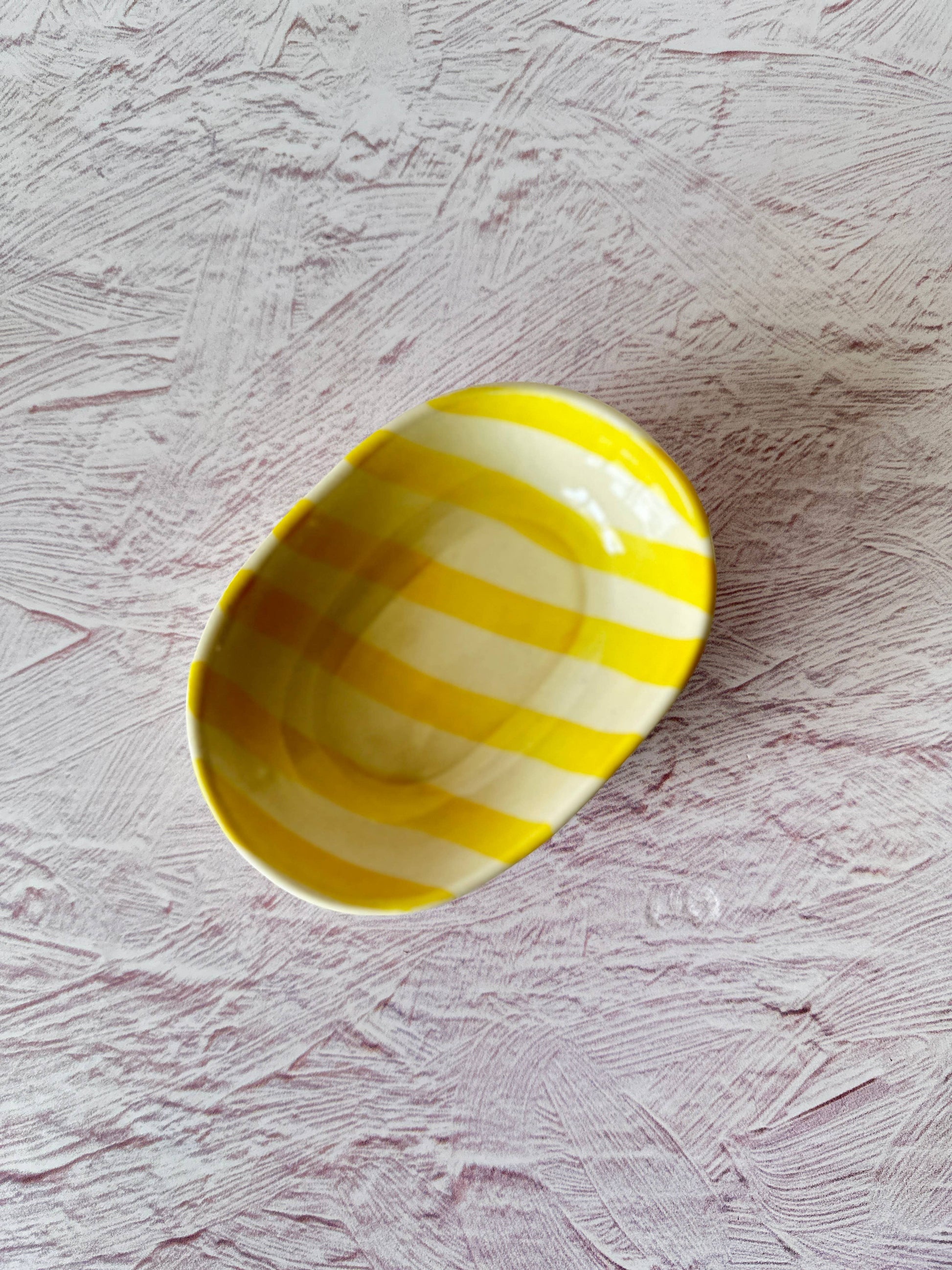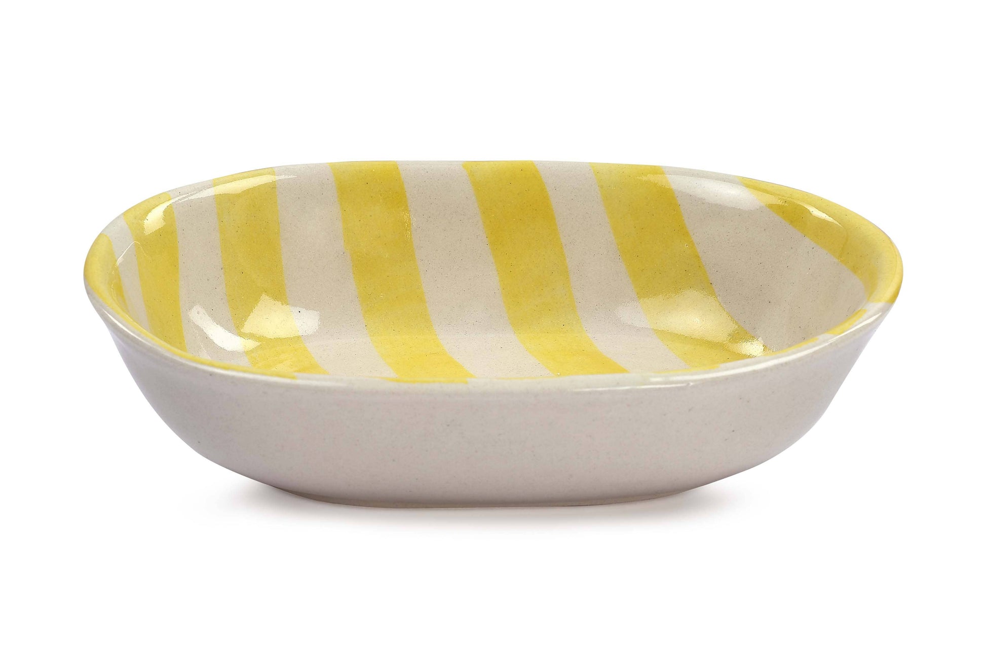 • Material - Ceramic • Size- 7x5x2 Inches • Color - Yellow • Hand Made in India • Microwave and dishwasher safe.