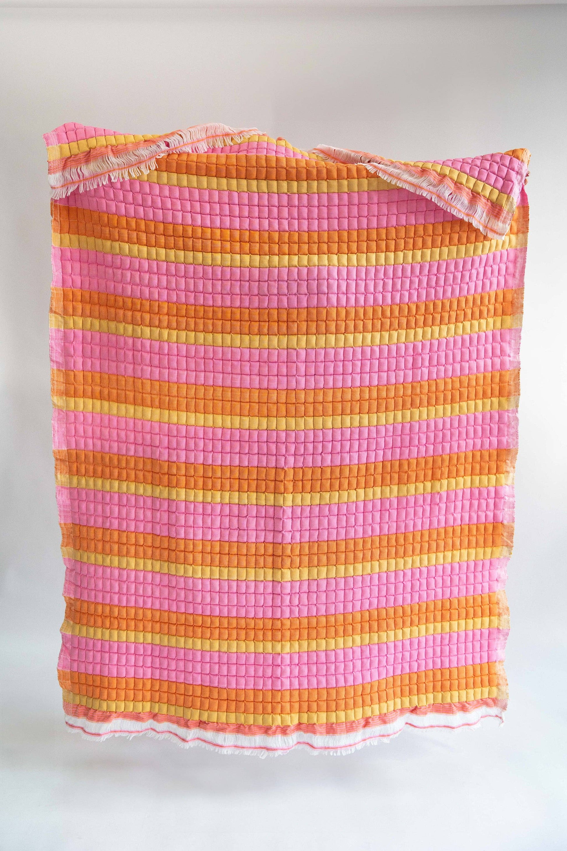 There are only three families in the world who are still practicing this craft. Sujani weaving is a double-cloth technique that creates cotton-filled "puffs" with a wonderfully unique and soft texture. Whether draped over your bed, sofa, or used as a cozy wrap, this blanket is as versatile as it is beautiful.