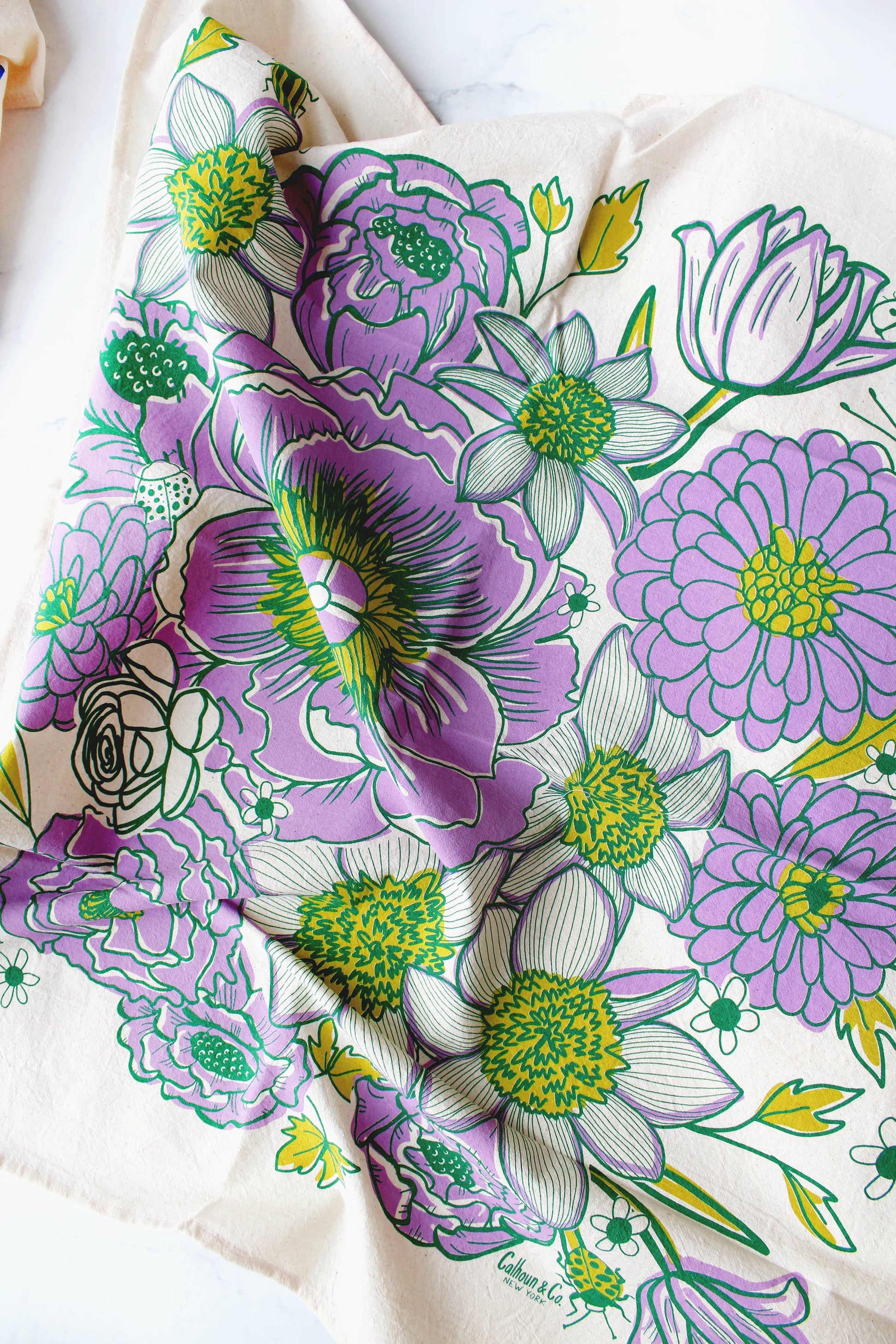Botanical inspired tea towel, with a few insect and butterfly friends too.
