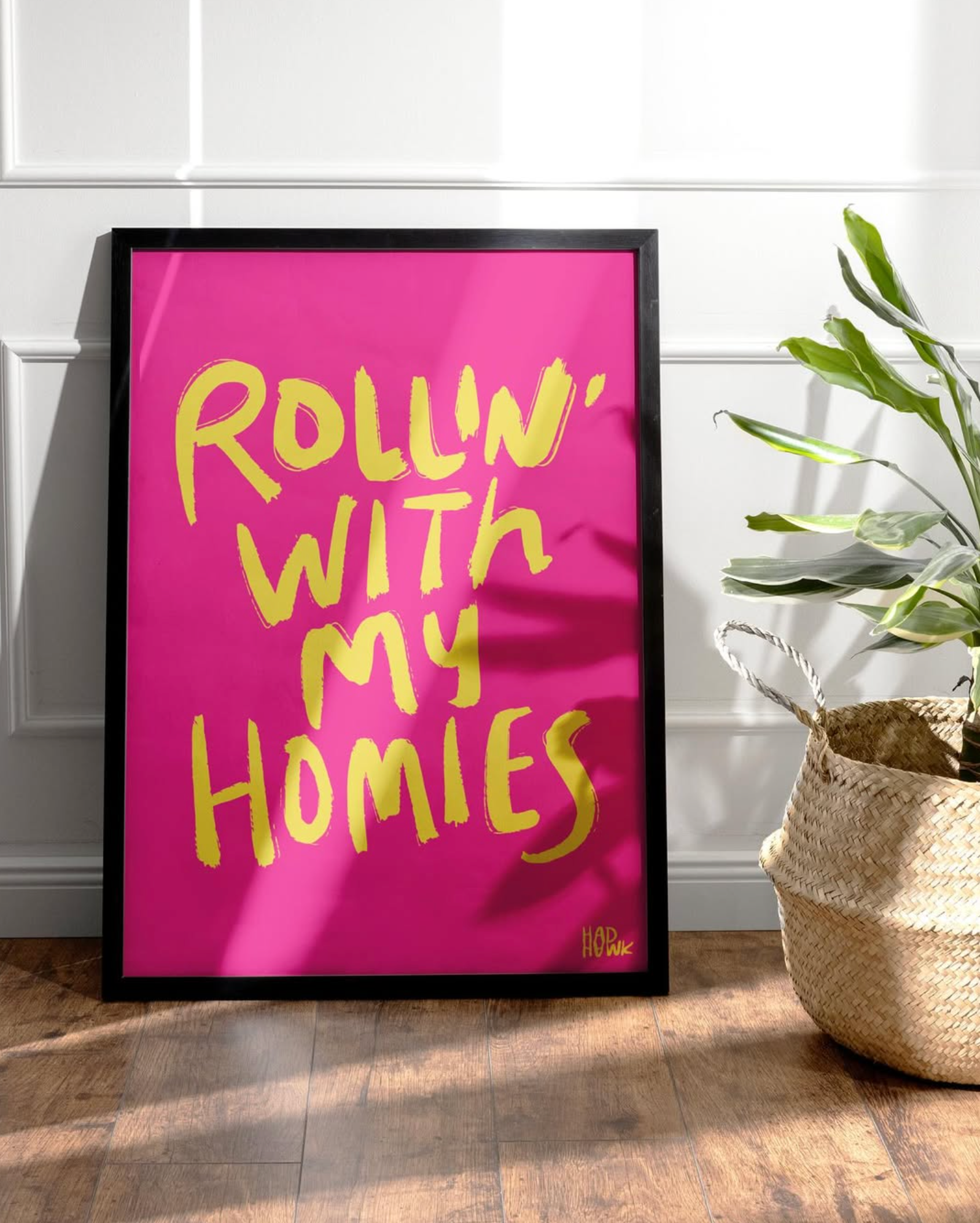 Hadhawk Design - Rollin with my Homies- 8.5 x 11 - Deep Pink