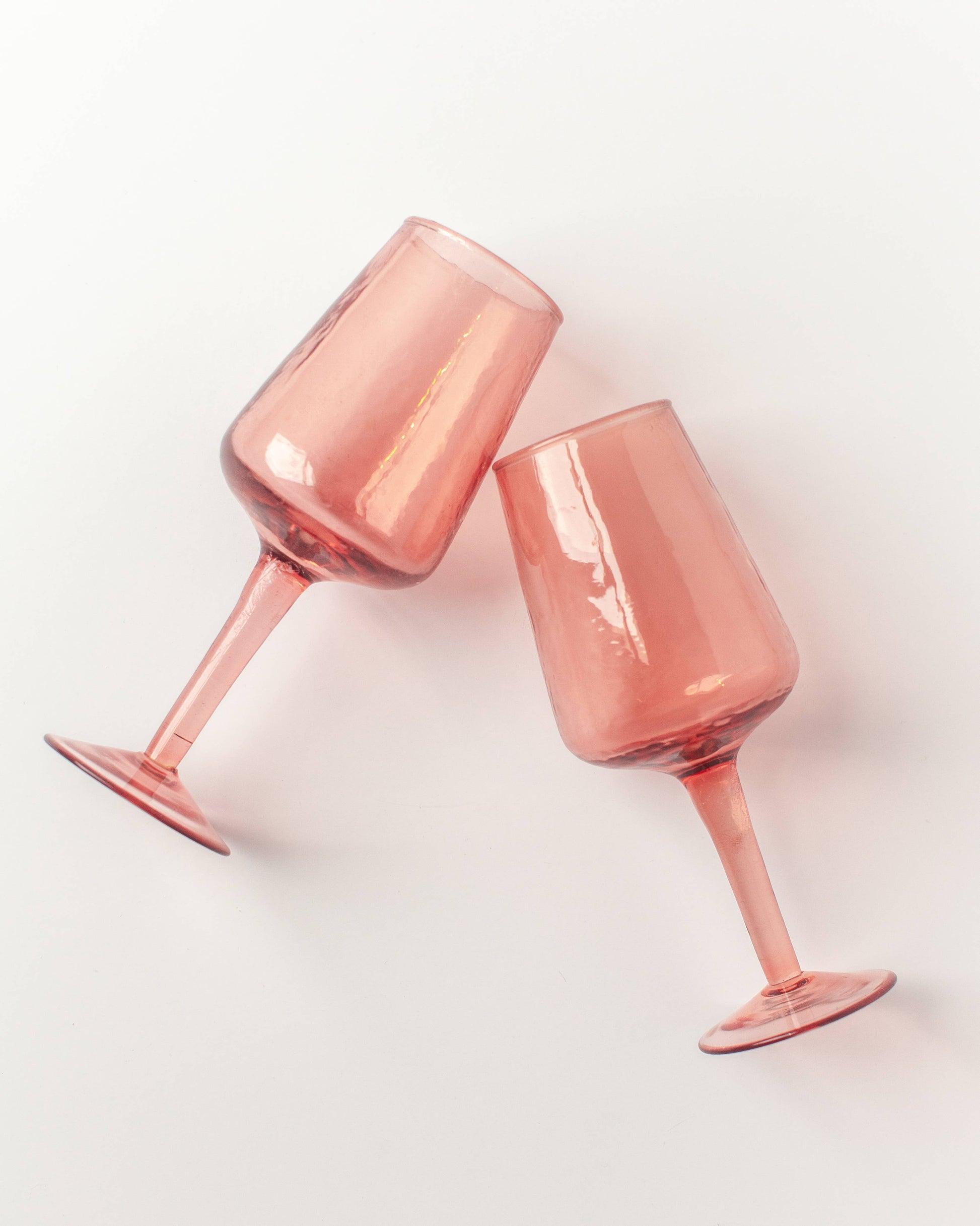 Each of these wine glasses tells a story of craftsmanship refined across generations. Handblown then meticulously hammered by hand, each generously sized glass features a beautiful pebbled texture and subtle color.