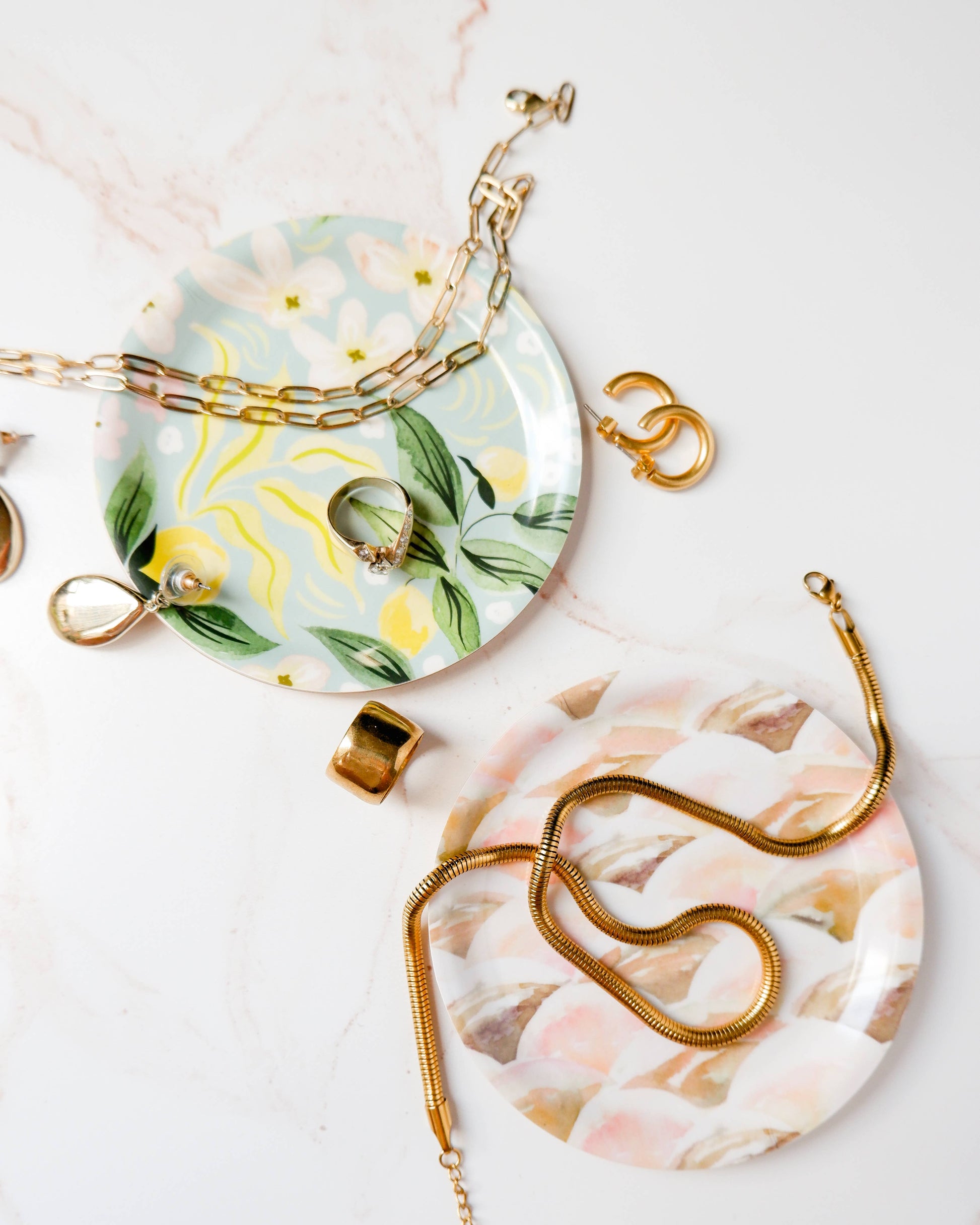 Keep your jewels together with this 11 cm lightweight dish. Crafted from several sheets of sustainably sourced birch veneer, and topped with a custom printed melamine layer, this unique catchall is sure to catch your eye.
