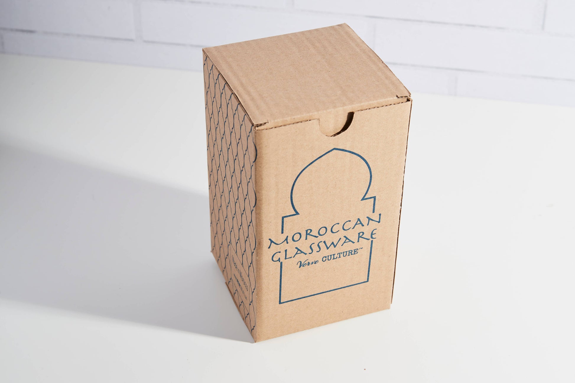 Our Moroccan glassware is made from recycled wine bottles, beer bottles, jars, or other glass containers. Slight variations in hue/color can arise due to variations in temperature, the amount of glass used, or even the artistic choices made during production. These differences contribute to the unique charm and individual character of each piece.