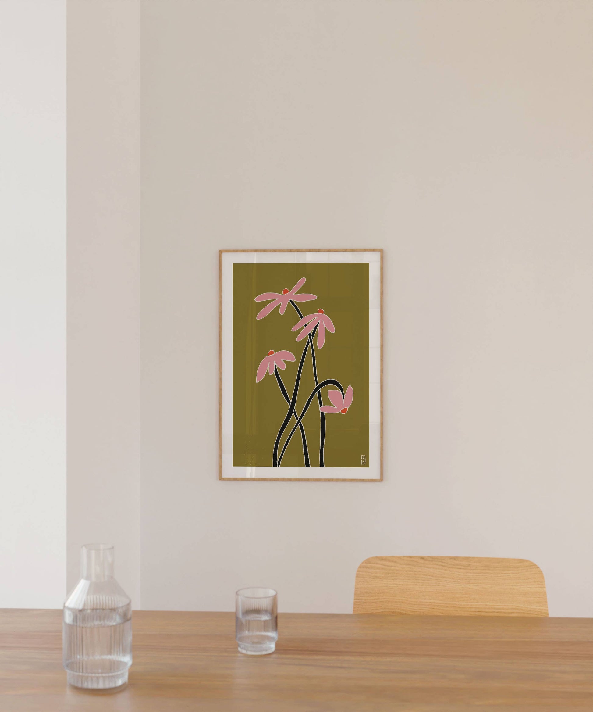 "Pink Daisies" Giclée Fine Art Print, Illustration By Pascale Berkowitz. PRINT DETAILS Printed on acid-free 290 gsm Moab Bright White Matte paper using archival inks for high quality detail and long lasting prints. Size Options: 8" x 10" inches 11" x 14" inches Each print includes 0.25" - 1" white border depending on size ordered.