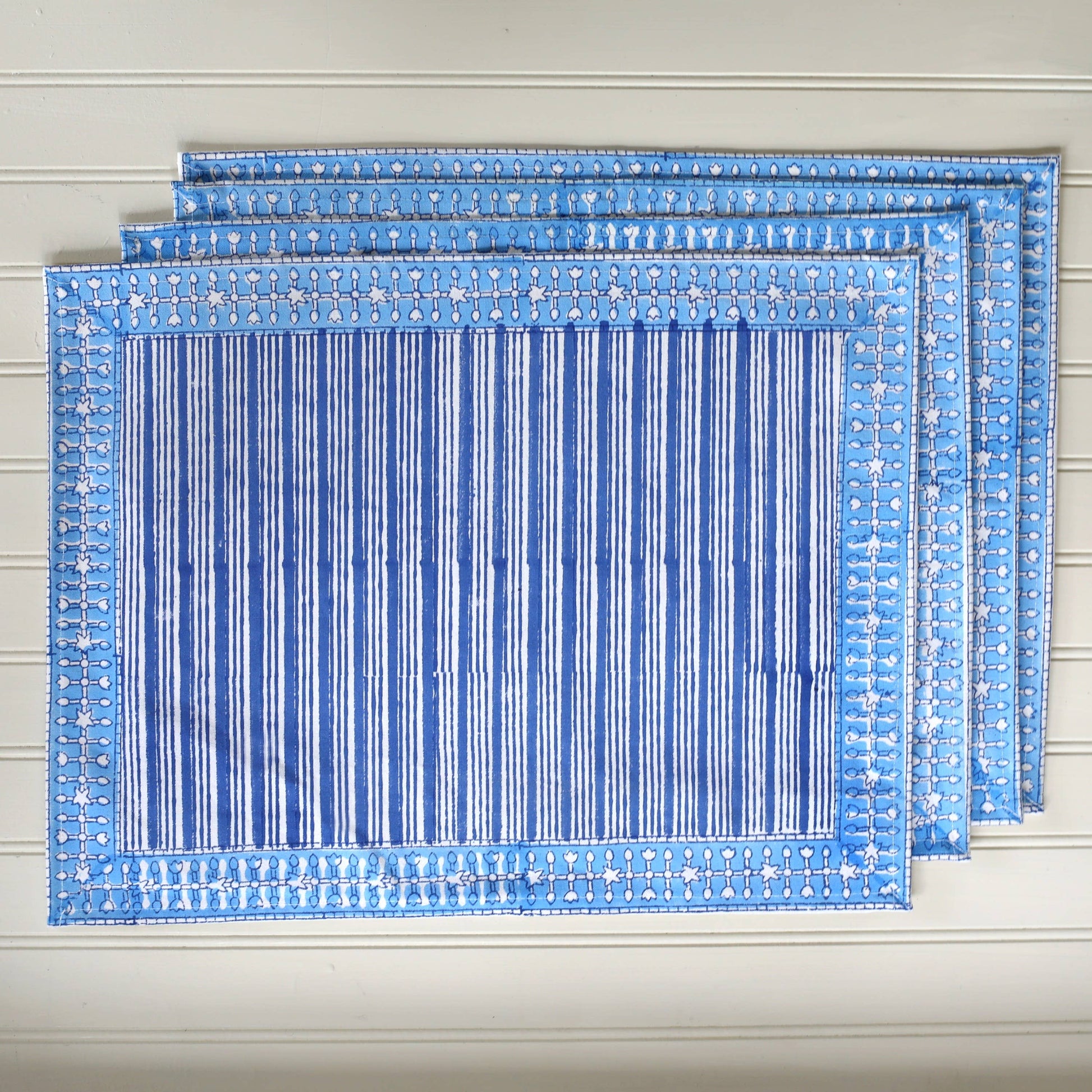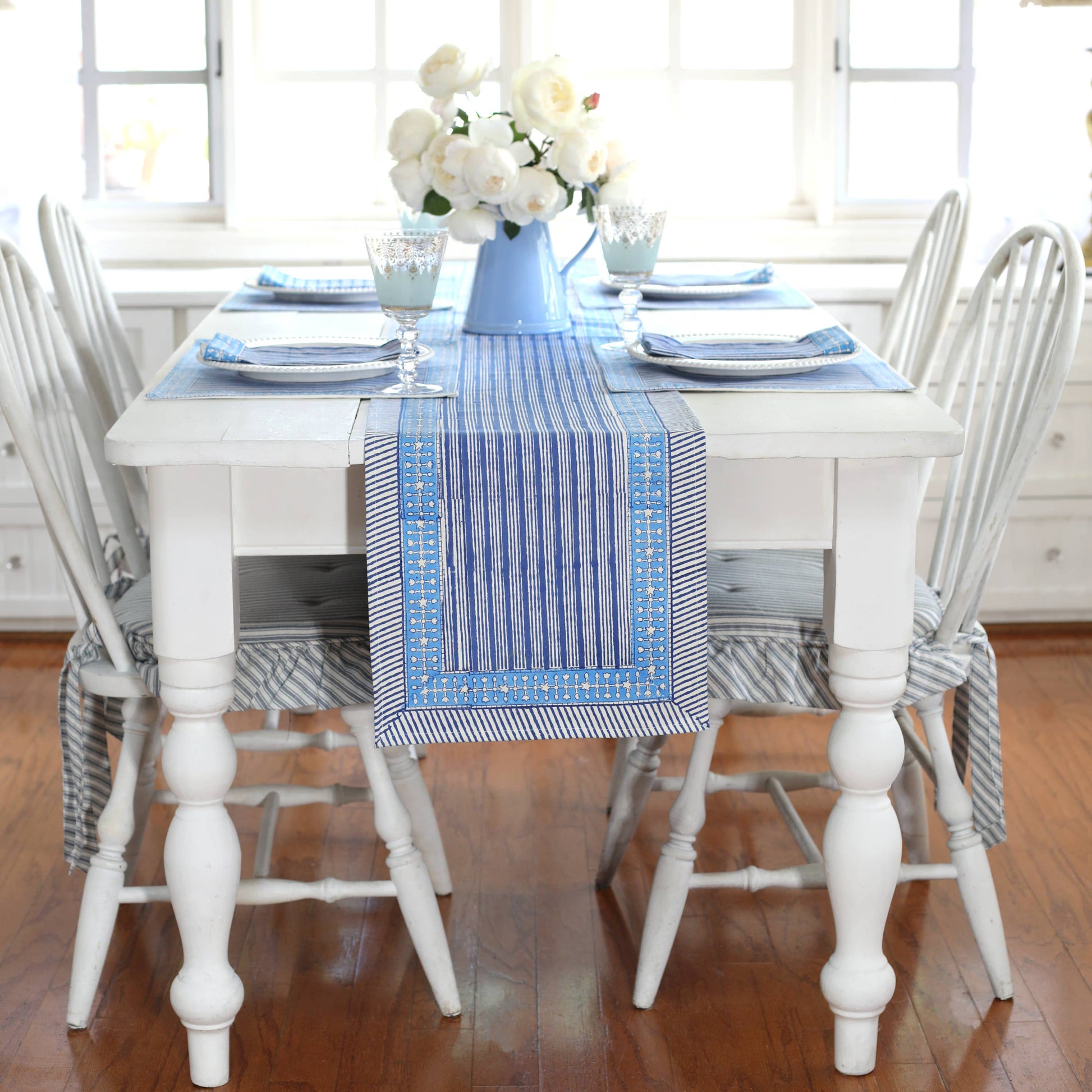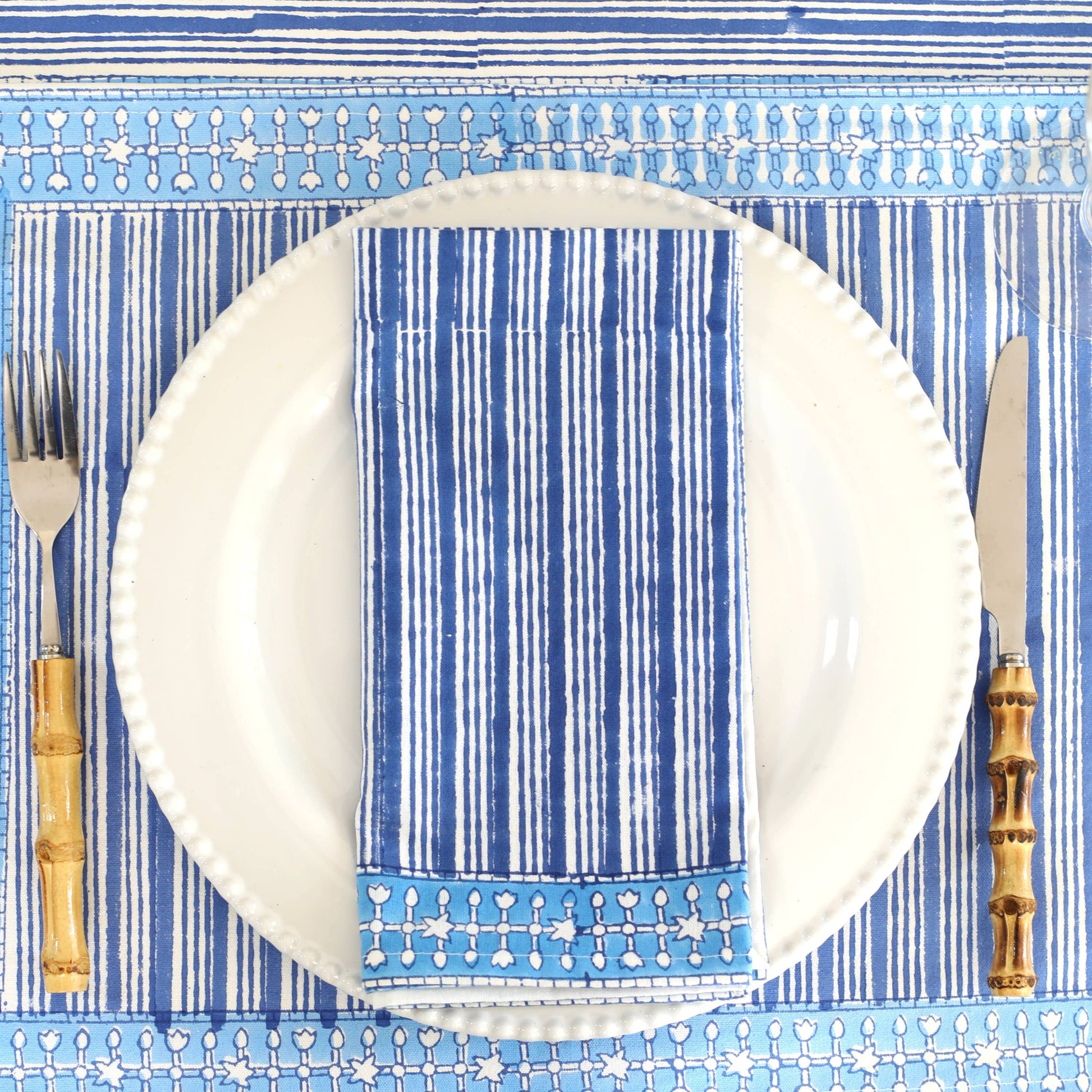 Hand block printed by skilled artisans, each piece showcases the subtle variations and character that make this traditional craft so special. Perfect for both casual meals and elegant gatherings, these linens add a touch of coastal simplicity and artisanal beauty to any setting