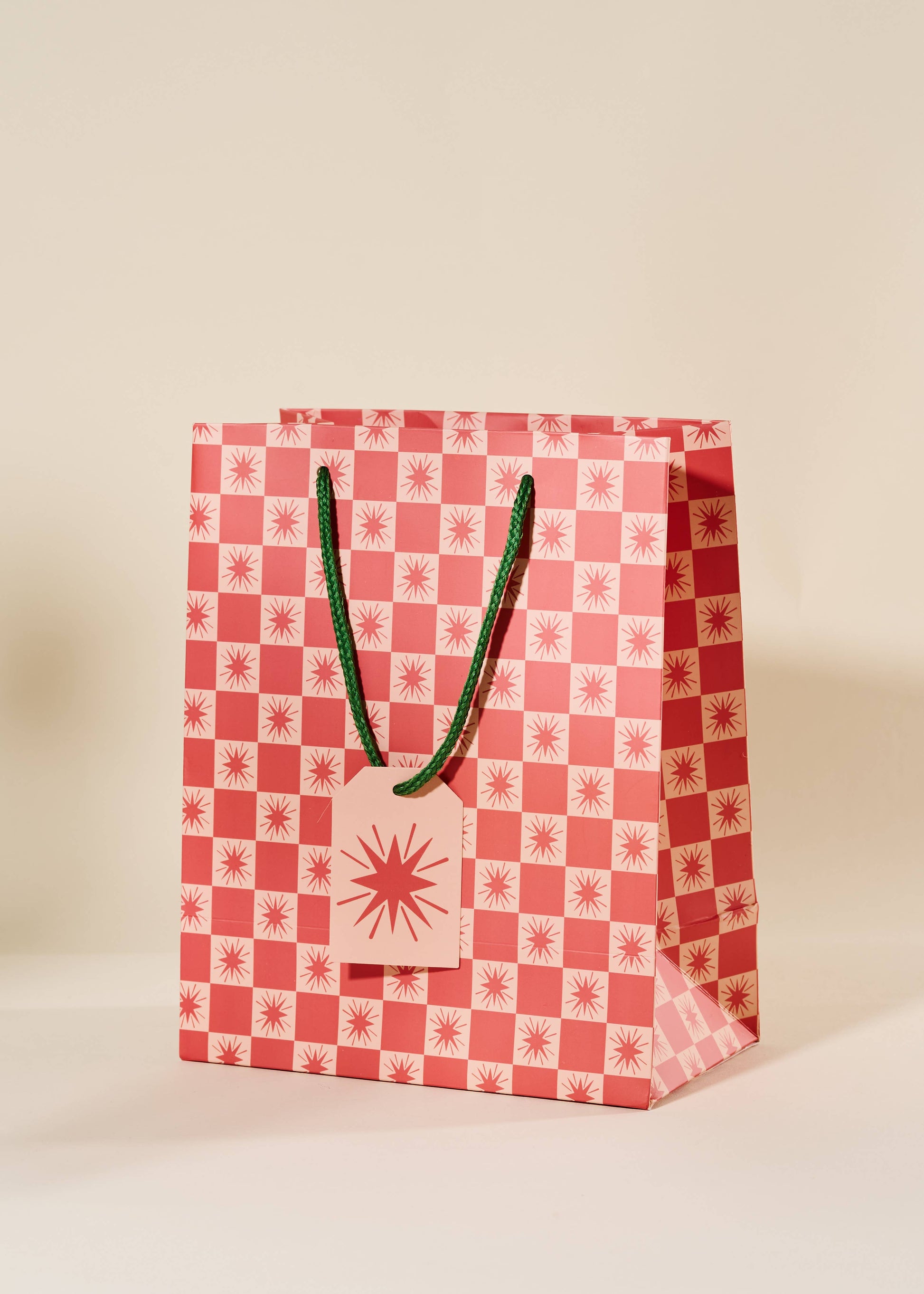 Making gift wrapping easy, these paper gift bags feature charming illustrations and braided rope handles. Made of sturdy printed paper, this bag will be sure to delight! Each bag includes a small tag. Measures 8 inches long, 4.5 inches deep, and 10 inches tall. Printed on 300 gsm paper.