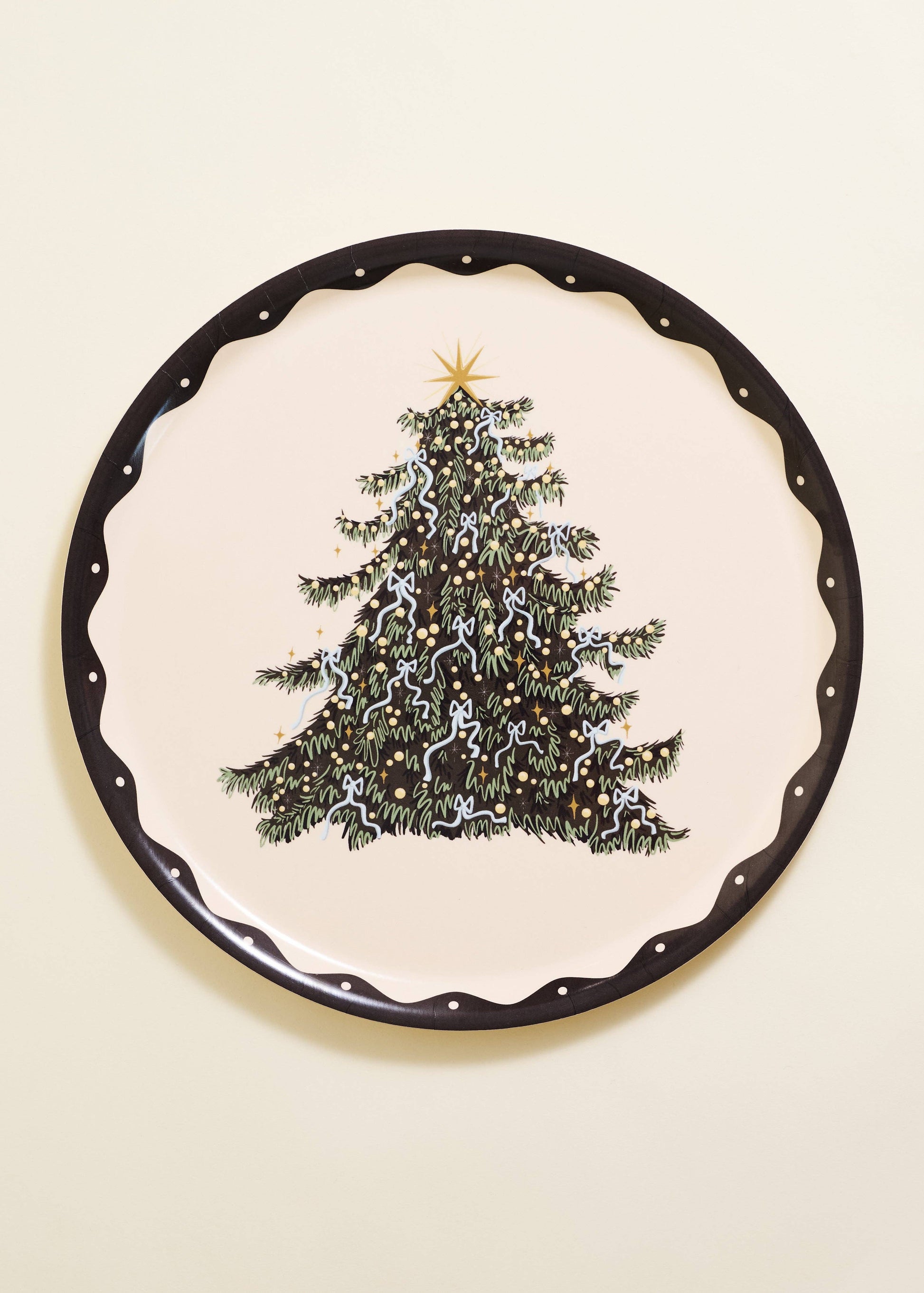 A classic Christmas tray, perfect for cookies and more. 31 cm round (12.2 inch) lightweight tray. Crafted from several sheets of sustainably sourced birch veneer, and topped with a custom printed melamine layer, this unique tray is sure to catch your eye. Food and dishwasher safe!