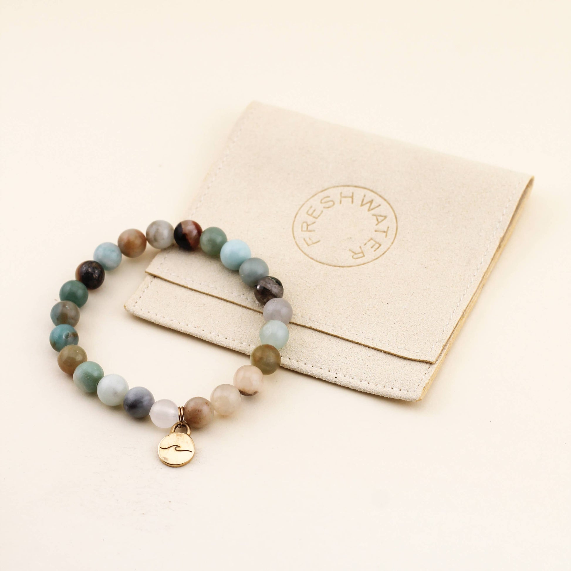 Remember to reapply your sunscreen with our UV-Awareness Bracelet! Our sun safety bracelet features a color-changing bead to remind you to take care of your skin, your choice of 8mm semi-precious stone, and a solid brass charm.